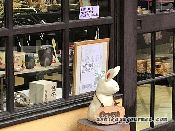 オーナーさんは、ミニコミ誌「足利漫我人」の編集とイラストを担当していた方で、可愛らしい猫やユーモラスな鬼をモチーフにした作品もあります。お酒好きの方のためのぐい呑みも置いてあるそうですよ。こちらは渋い作品が多いです。