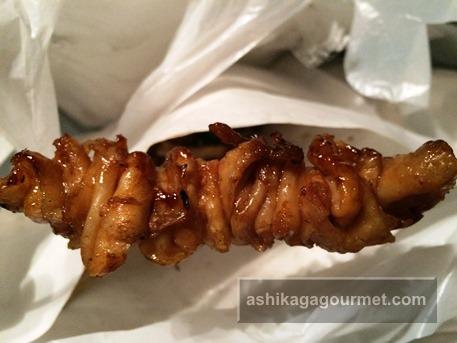 3センチ大の小さなもも肉が数珠つなぎのように串に刺されています。