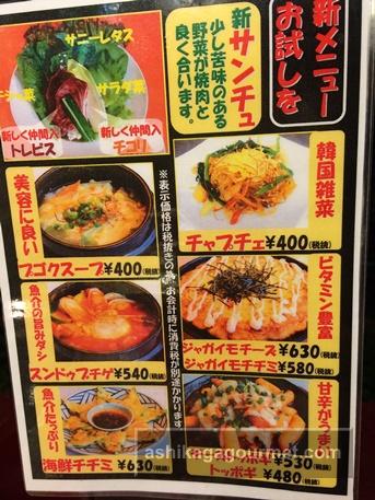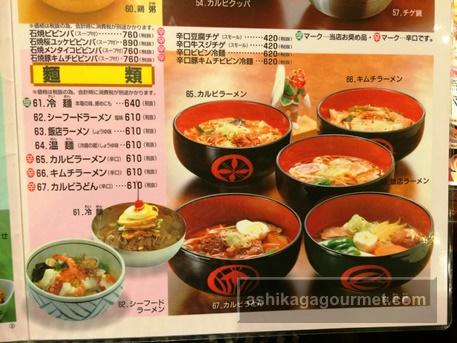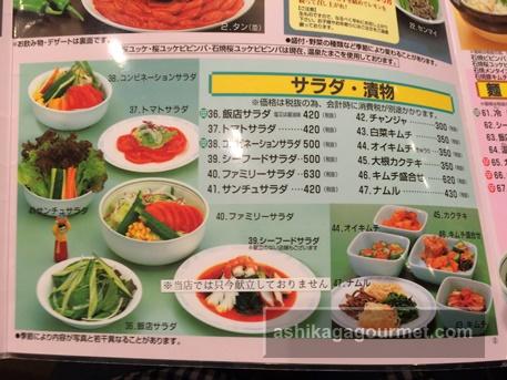 【朝鮮飯店のメニュー】