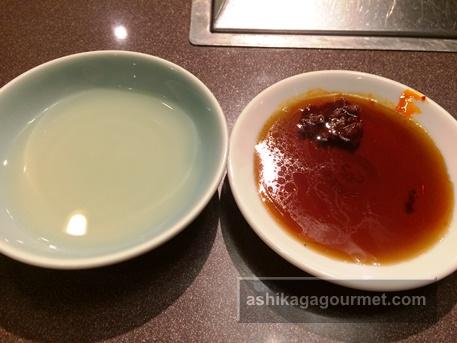 テーブルにあるタレは甘辛い通常のタイプのたれと、コチュジャンです。