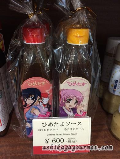「ひめたまソース」は2011年10月に発売されました。「ひめたま」というのは、足利市内にある織姫神社のと門田稲荷神社の神様を「ひめちゃん」「たまちゃん」としてキャラクター化したものです。足利では毎年このイラスト他アニメのキャラクターがペイントされた「痛車」が終結する「ひめたま祭り」というのをやっています。