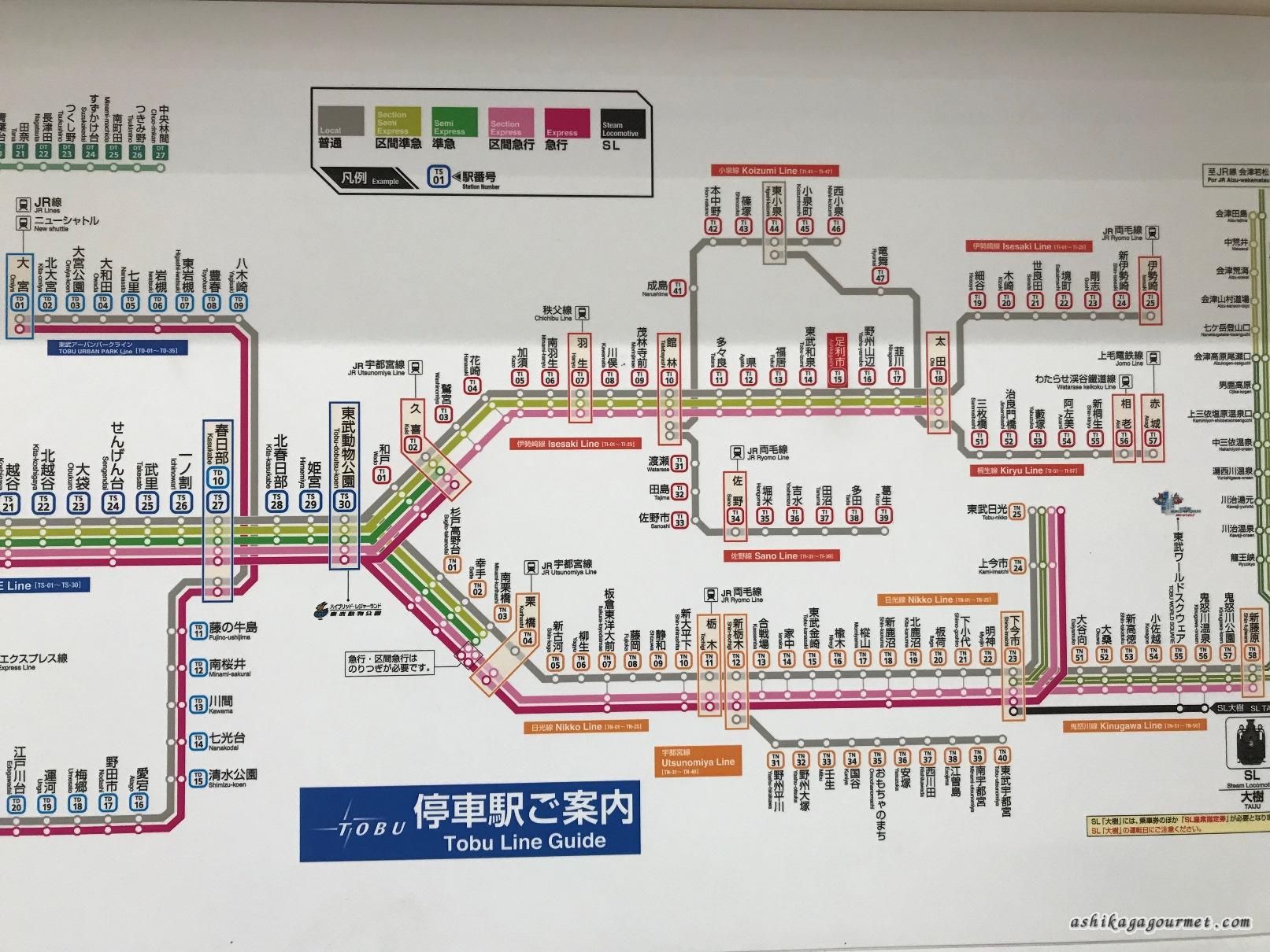 東武線・特急停車駅 *クリックで拡大できます。