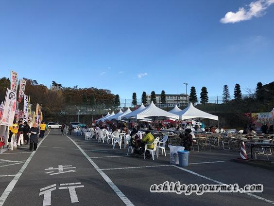 足利グルメグランプリは、毎年11月末の連休3日間に、「あしかがフラワーパーク」正門前の駐車場において開催されています。